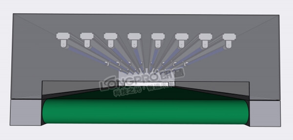 朗普科技(LONGPRO)根據紫外殺菌劑量(參考GB15981標準)要求,選用朗普高強度紫外線殺菌燈HL-840(單燈150W,1m紫外強度:≥580μW/cm2)通過計算所需數量為8盞,紫外劑量≥ 20,000μW.s/cm2。紫外線燈安裝在輸送線內部上方4盞,下方4盞(采用滾軸傳送,便于紫外線有效照射信件底部), 快遞信件在輸送線上勻速通過,紫外線照射時間≥5s,從而快速有效殺菌。